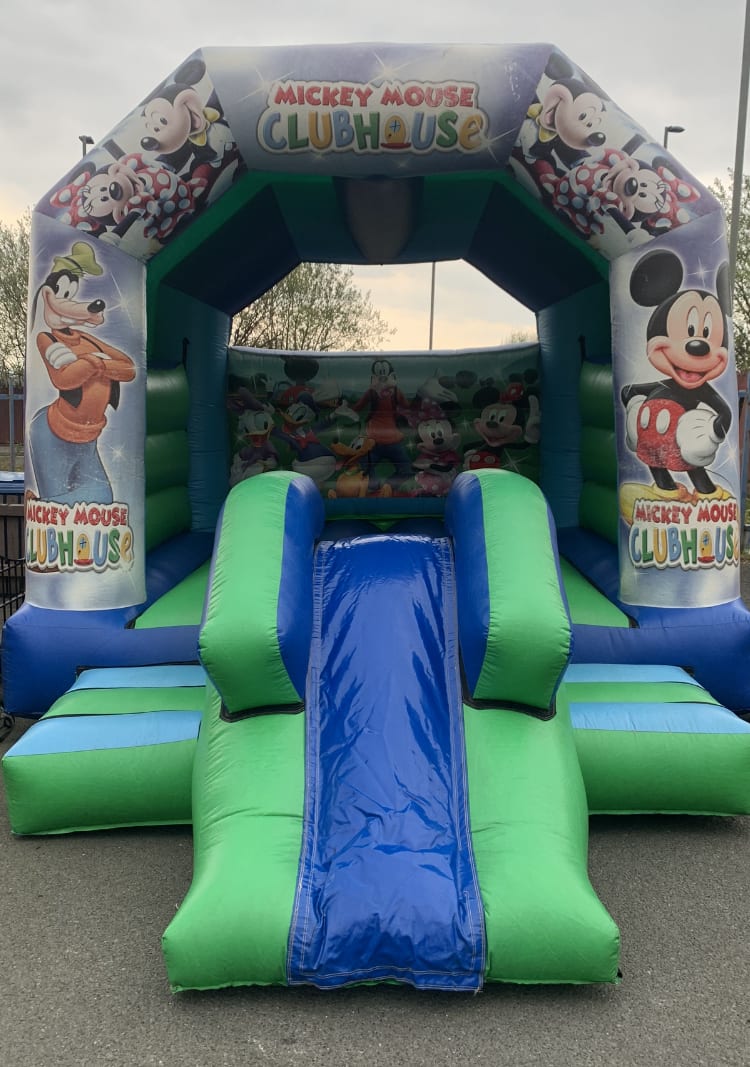 Delight your little ones with our Mickey Mouse Bouncy Castle Slide from Acorn Bouncy Castle Hire Liverpool. Featuring all the favourite characters from the clubhouse, this slide castle is a standout choice for children's birthday parties, christenings, communions, or any special occasion you're planning in the Liverpool area.