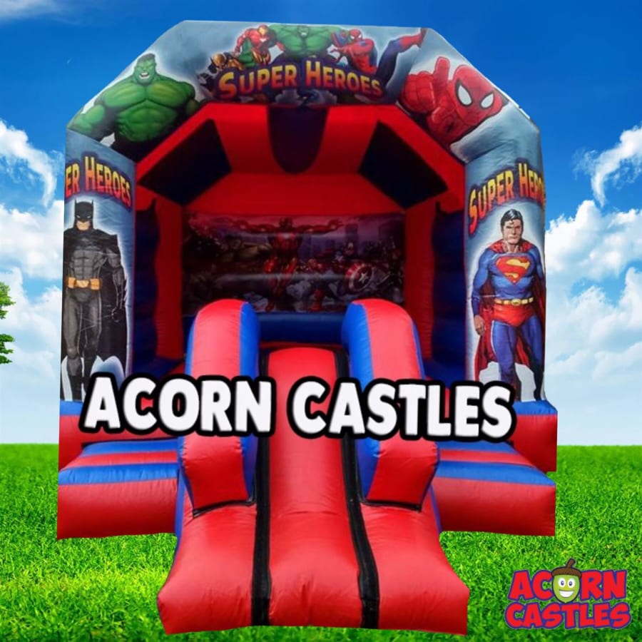 Ready to bring some superhero action to your next event? Book the Superheroes Slide Castle today! For booking or to explore more inflatable options like bouncy castles and slide combos or bouncy castles, simply click below or contact us at Phone number 07846538993. Let Acorn Castles help make your celebration a super-powered success!