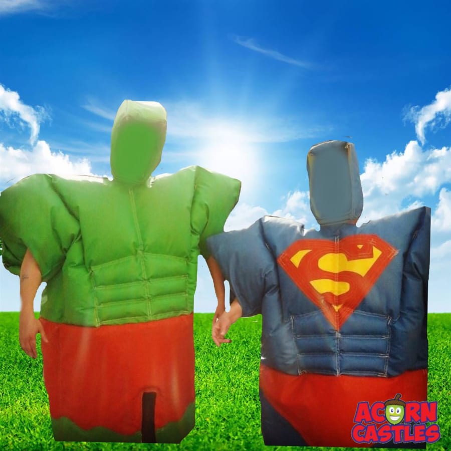 Unleash your inner hero with our Superhero Sumo Suits from Acorn Bouncy Castle Hire Liverpool. Perfect for both outdoor and indoor events, these sumo suits bring a unique twist to any gathering. Two players don oversized sumo suits and battle to push each other off the mat, providing endless entertainment and laughter. Each suit comes with protective headgear and full instructions to ensure safety and fun for participants.
