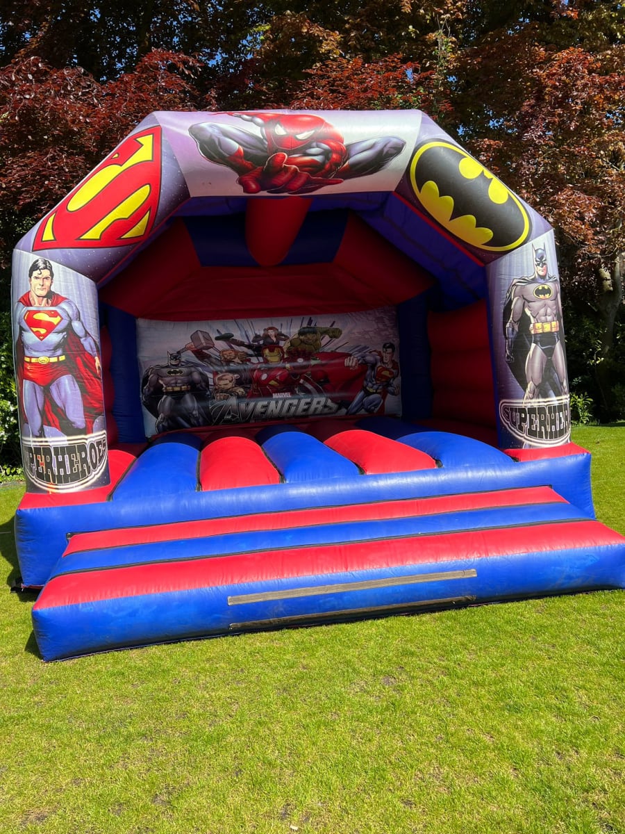 15FT X 17FT SUPERHEROES CASTLE FROM ACORN BOUNCY CASTLE HIRE LIVERPOOL.
