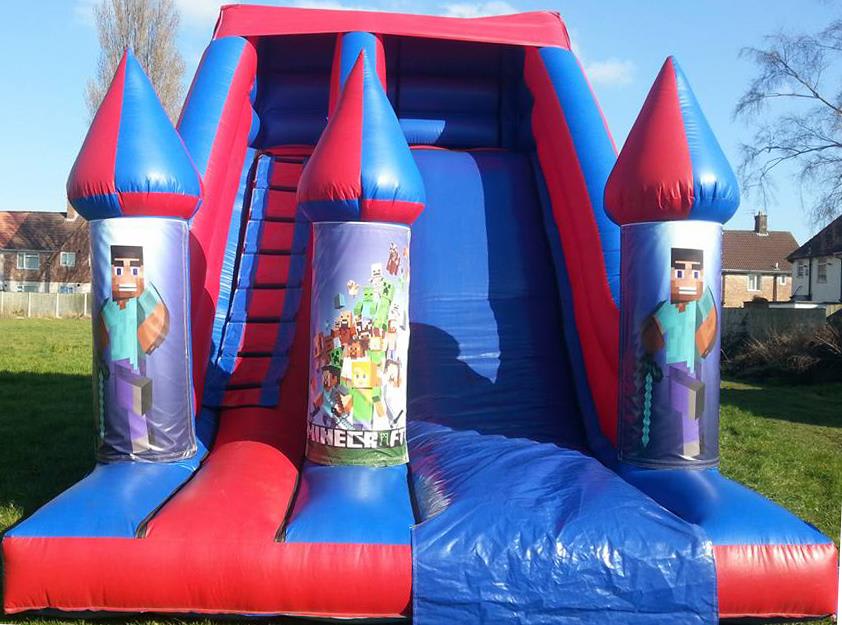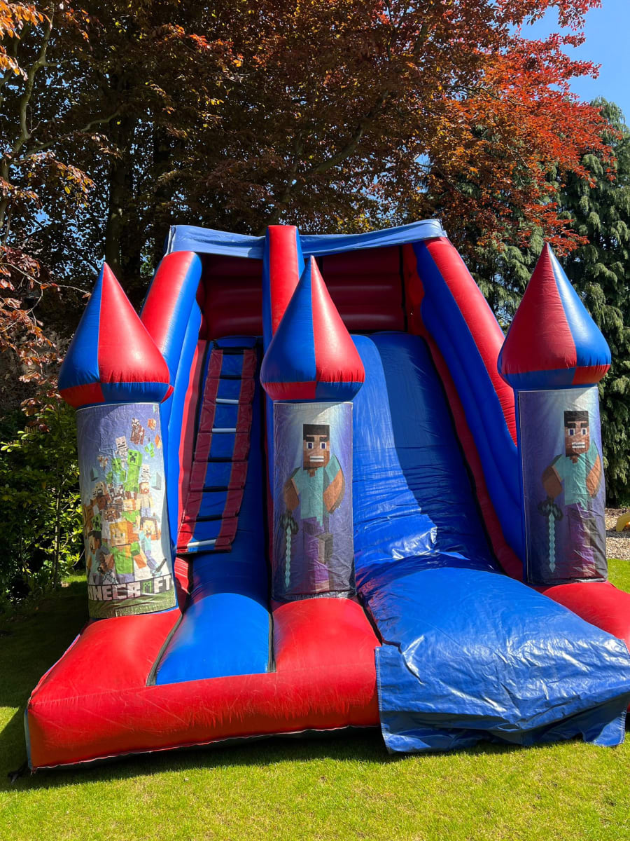 We have other themed slides available 16ft High Superheroes Slide 16ft Mega Slide with Mickey & MInnie Mouse. We also have plain blue & red 16ft High Slide. If you are planning a Minecraft party why not add on a 10 ft x 10 ft Minecraft Castle10 ft x 12 ft Minecraft castle12 ft x 14 ft Minecraft Castle12ft x 20ft Minecraft Bouncy Castle Slide15ft x 17ft Minecraft Castle